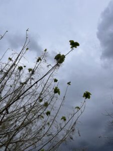 これはアメリカシロヒトリに食われた木の葉。すごい生命力で先っぽに新芽が出ていたよ。