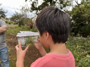 どんぐりの山椒にもたくさんの黒い幼虫が付いていて、よっちゃんが一匹持ち帰ったよ。