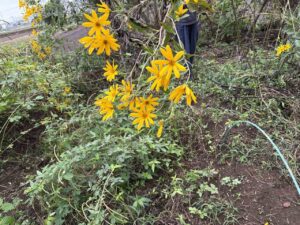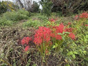 どんぐり小屋には、彼岸花やキクイモの花が咲き始め、秋の訪れを感じます。