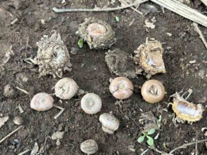 さらに、地面に落ちていた不思議な殻のようなものを発見。「かたつむりの殻?」と思いきや、よく見るとどんぐりの殻でした。