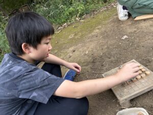 わーちゃんが来て、野球のボールを探していたけど見つからなくて、オセロをしようということに。こちらもコマが足りないことがわかっていたので、アカメガシワの枝を剪定して、コマを8個足した。