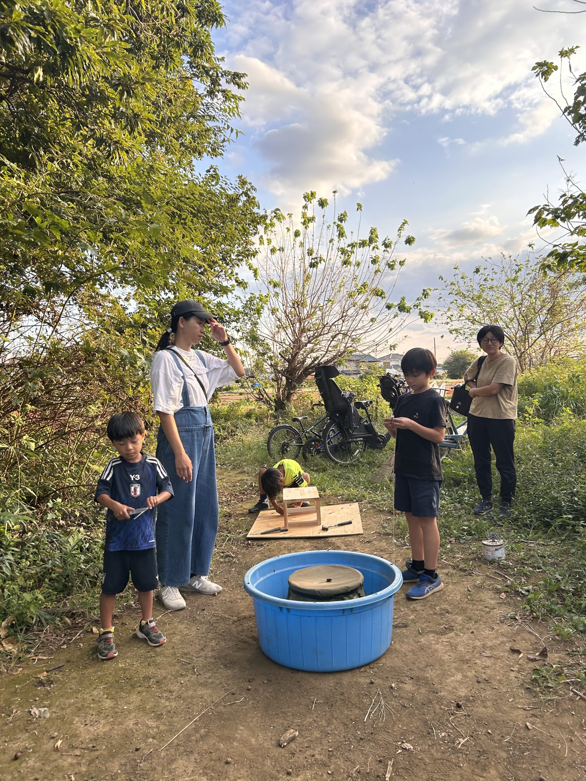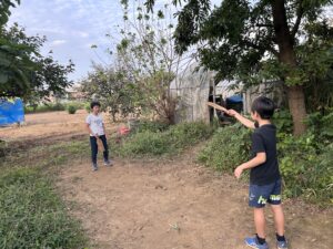 みんな来る前に草刈りをして、カブとカキナとルッコラの種を蒔いといたよ。