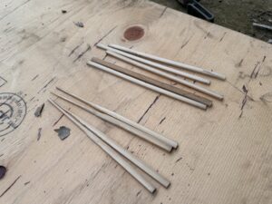 端っこの方で、箸and串職人をするハルマとエイタ。