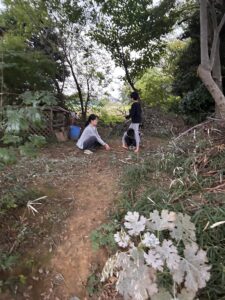 それから剪定枝の山から枝を切って、ももちゃんの小屋を作りたいって言っていたけど、これはどうなったかな?