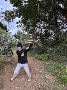 その後シュロの皮を剥いで縄ないをしてみたよ。ちょっと説明しただけでかなりしっかりとできている!すごい!