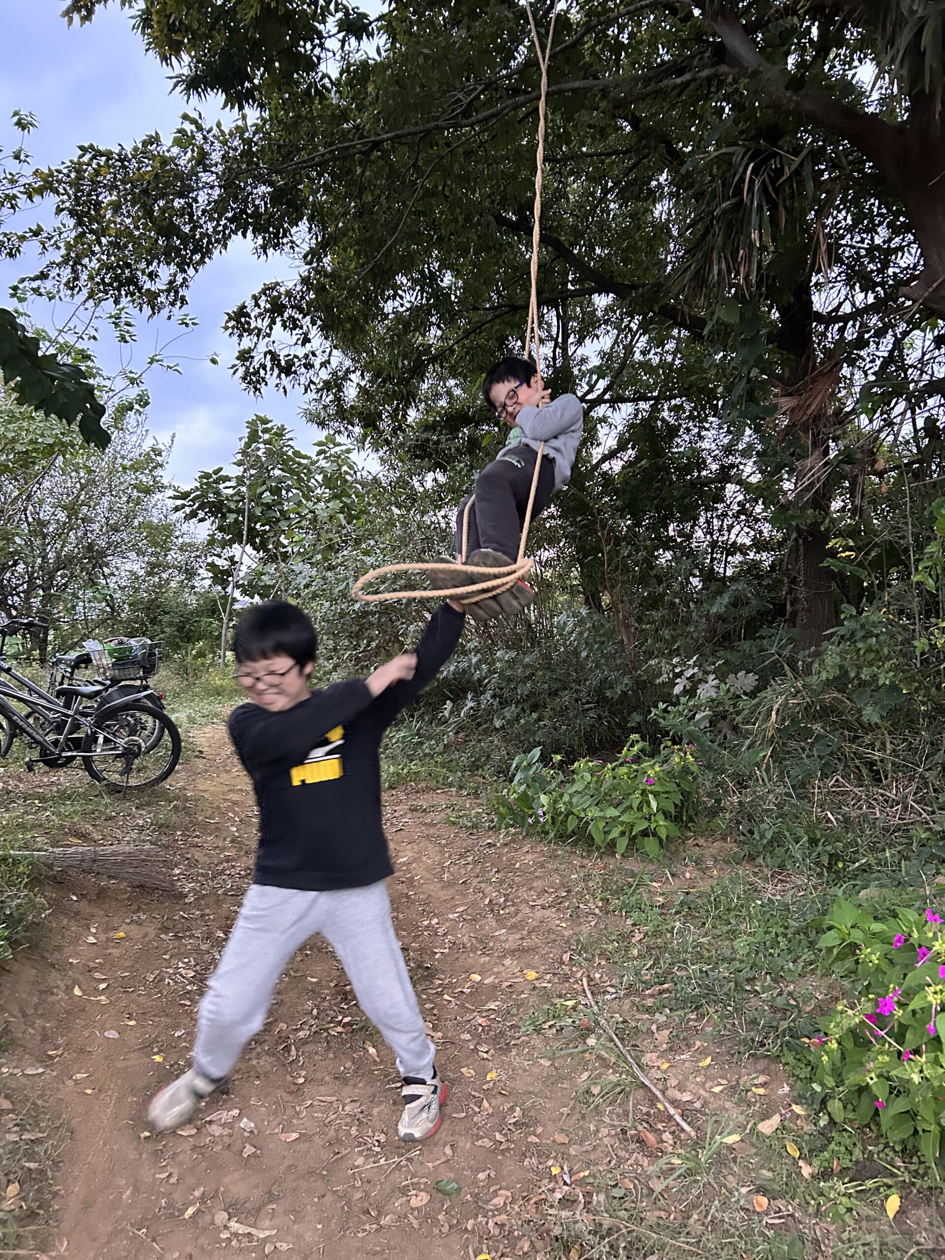 今日はユイタとイチタ兄弟が来たよ。ユイタが先に来て、イチジクを一生懸命採ろうとがんばった。
