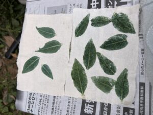 これは水に濡らすともう少し青い色素が出てくるんだけど、葉っぱの感じを保ちたければこのままにしておいて大丈夫だよ。