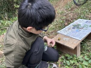 3代目クヌギJr.に登って、来年落ちるはずの青いどんぐりをユイタが採ってきた。帽子を外してどうなってるのか観たかったんだって。