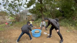ケイタとソウタ来て、本気ベーゴマ。途中パパが上着を届けてくれたので、一緒にやったけど地滑り気味。