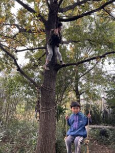 ユイタがちょこっとだけきて、羽根つきしたけど風が強くて断念。そして大好きなクヌギJr.登り。