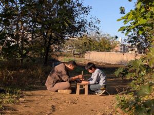 昨年みんなで作った藁の家を、昨日とこちゃんが解体。今日は、今年の藁の家の準備をしていました。