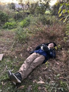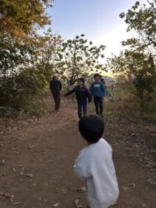 ユイタ作のホウキ2号で落ち葉掃き。たくさん掃いてくれたね。