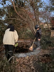 もう地表よりも高く落ち葉が積まれているから、誰も穴だとは思わないよね。今日は隣のおじちゃんに「穴掘って埋めてよ」って言われたけど、これまで毎年「ゴミ袋に入れて捨てて」と言われていたから、今年はちょっと意外でした。「穴掘って埋めて」はかなりの歩み寄り!(そして穴は毎年掘っています)