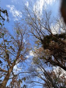 とこちゃんもどうぞって言われたので、一緒に転がって上を眺めたよ。ほんとーに気持ち良いんだよ。ふわふわの落ち葉の上って!