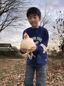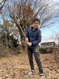 カッコ良いのができたけど、今日キックボードで来ちゃったので、イチタに持ち帰ってもらうことにした。この後ノビルも採ったよね。