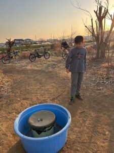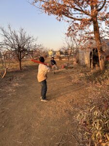 最後に野球をしたよ。ユイタが投げたり打ったり。