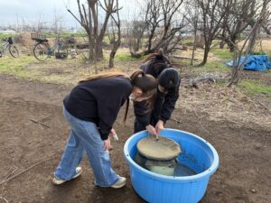 すごく太い根っこを張って生きていて、この根っこが漢方薬になったりするんだよね。けどめちゃくちゃに苦い。そしてこのギシギシの若葉が生える前のツンと尖った部分が、ぬるっとしていて美味しいの。あちこちにあるギシギシの若葉を摘んでいったよ。
