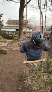 今日はイチタが来ると、すぐに侵入者の心配をしてくれていて、ブランコの修理から始めたよ。