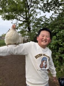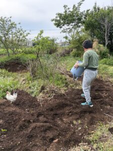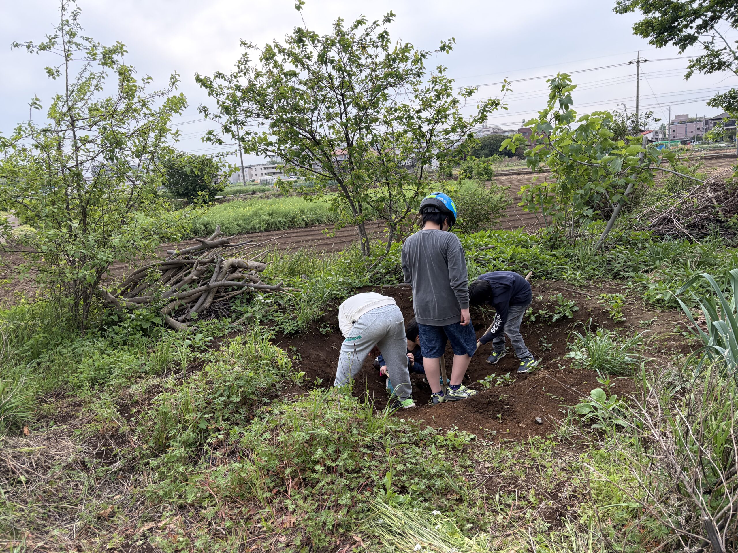 タッちゃんとチンさんとナツトが来て、穴掘り。ナツトは地下水と石油を掘り当てたいと言ってたね!