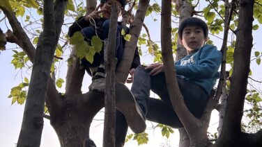 最初にユイタが来て黄葉が始まったクヌギJr.に登ったよ
